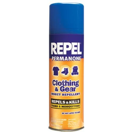 For shoes, clothing, nets, gear and tents (not to be applied to skin) - Lasts up to 2 weeks through several washes - Repels and kills ticks and mosquitoes. Contains .5% Permethrin. Excellent for tent treatment.